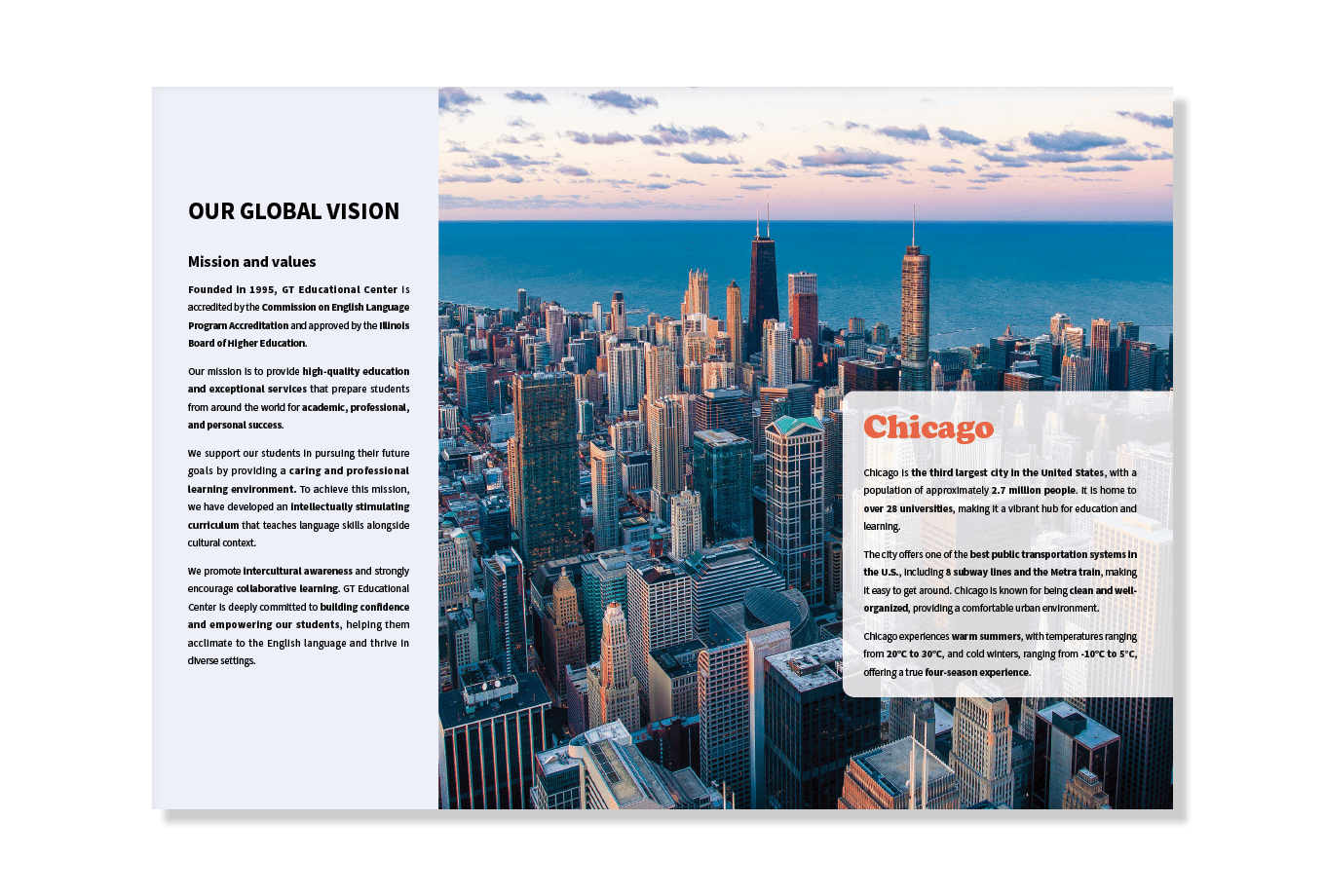 STUDY ENGLISH IN CHICAGO - GT Educational Center GT Educational Center 영문 브로슈어 Client: GT Educational Center Date: 2026.3